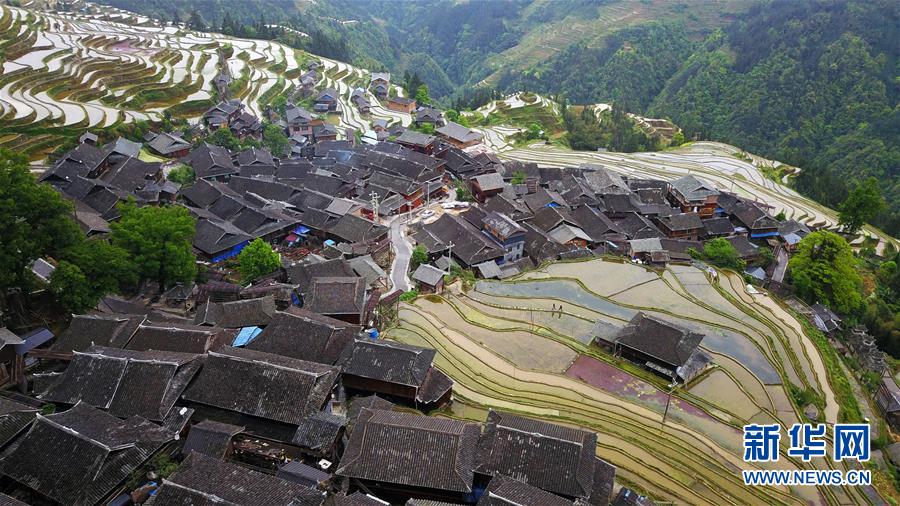 貴州省從江縣加榜鄉(xiāng)黨扭村苗寨景觀(4月17日攝)。貴州省從江縣把人居環(huán)境整治作為脫貧攻堅工作的一項重要舉措來抓,對鄉(xiāng)村規(guī)劃范圍內(nèi)長期無人居住的危房、廢棄禾倉、棚圈、柴草房和房前屋后的殘垣斷壁等進行清理整治,進行復墾復綠,同時開展農(nóng)戶衛(wèi)生和村寨環(huán)境整治,做到鄉(xiāng)村環(huán)境干凈、衛(wèi)生、整潔,扮靚美麗鄉(xiāng)村。新華社記者楊文斌攝