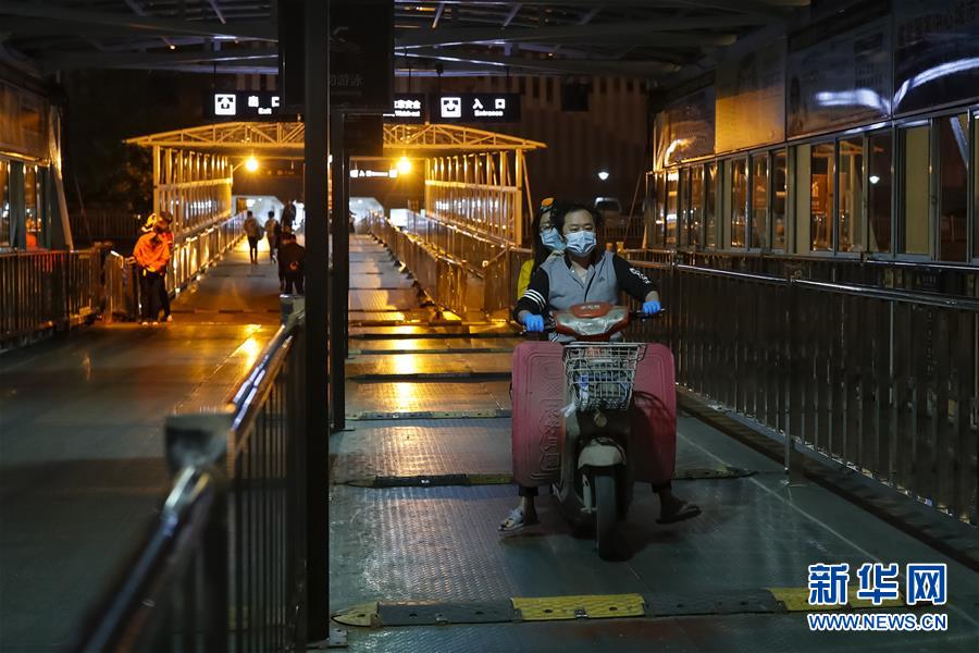4月22日,市民騎電動車乘坐武漢長江客運輪渡出行。為建立與經(jīng)濟(jì)社會發(fā)展和疫情防控需要相適應(yīng)的運輸服務(wù)保障機制,保障市民出行需求,從4月22日起,武漢城市公共交通有序恢復(fù)全線網(wǎng)運營。新華社記者沈伯韓攝
