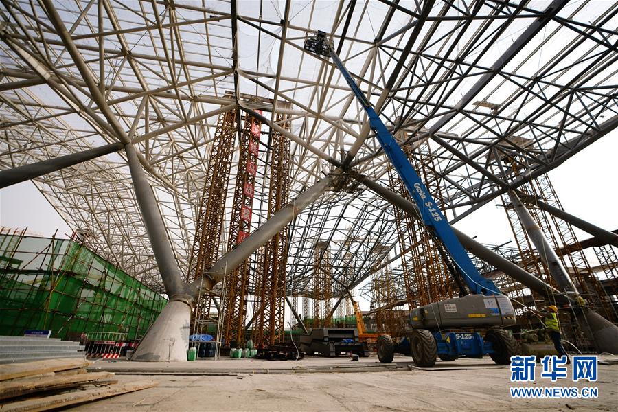 4月24日,中鐵建設(shè)集團(tuán)的工人在星火站施工。北京星火站是京沈高鐵的始發(fā)站,站房總建筑面積18.3萬(wàn)平方米,將于2020年底完工。目前正在進(jìn)行混凝土主體結(jié)構(gòu)收尾工作,鋼結(jié)構(gòu)主體正在緊張施工,即將完工。新華社記者邢廣利攝