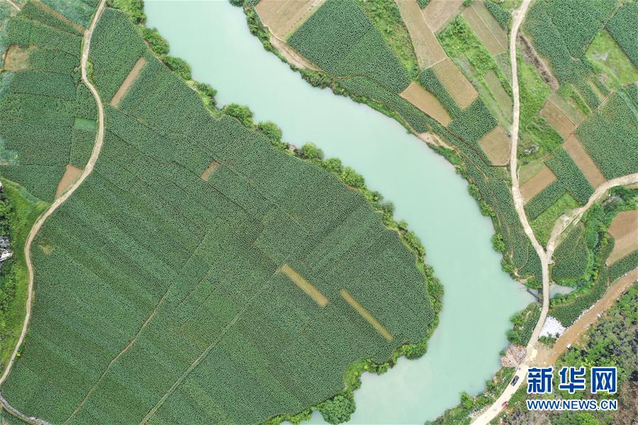 廣西隆安縣南圩鎮(zhèn)田園景色(4月23日攝,無人機(jī)照片)。新華社記者曹祎銘攝