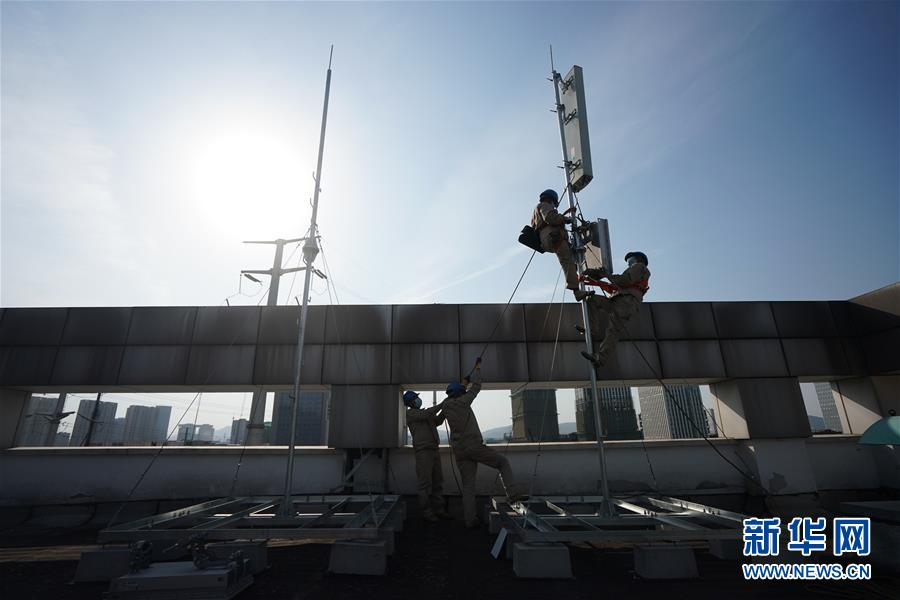 4月25日,在南京220千伏城南河變電站屋頂,工人在架設(shè)5G設(shè)備。當(dāng)日,三大通信運(yùn)營(yíng)商的2座5G、3座4G基站建設(shè)工作在南京220千伏城南河變電站屋頂有序展開(kāi)。在變電站內(nèi)建設(shè)基站可有效利用電網(wǎng)資源,縮短建設(shè)周期,節(jié)約建設(shè)成本。新華社記者季春鵬攝