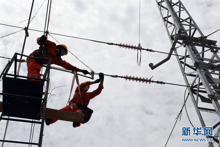 4月25日,在福建省寧德市屏南車站,施工人員開(kāi)展接觸網(wǎng)調(diào)整作業(yè)。中鐵電氣化局集團(tuán)上海公司推動(dòng)衢寧鐵路福建段通信工程、信號(hào)工程、電力工程、電氣化工程各環(huán)節(jié)協(xié)同復(fù)工復(fù)產(chǎn),目前來(lái)自河北、河南、四川等國(guó)內(nèi)10個(gè)省的900多名員工返崗就業(yè)。衢寧鐵路北起浙江省衢州市,南至福建省寧德市,全長(zhǎng)379.2公里。新華社記者彭張青攝