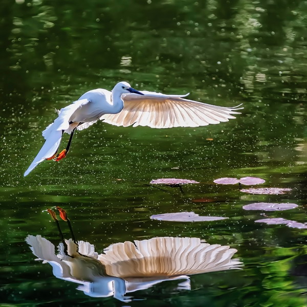 4月15日,攝于南山區(qū)華僑城天鵝堡附近。這是深圳拍鷺鳥(niǎo)的其中一個(gè)好去處。白鷺飛行時(shí)頭往回縮至肩背處,頸向下曲成袋狀,兩腳向后伸直,遠(yuǎn)遠(yuǎn)突出于尾后,兩翅緩慢地鼓動(dòng)飛翔。徐捷攝