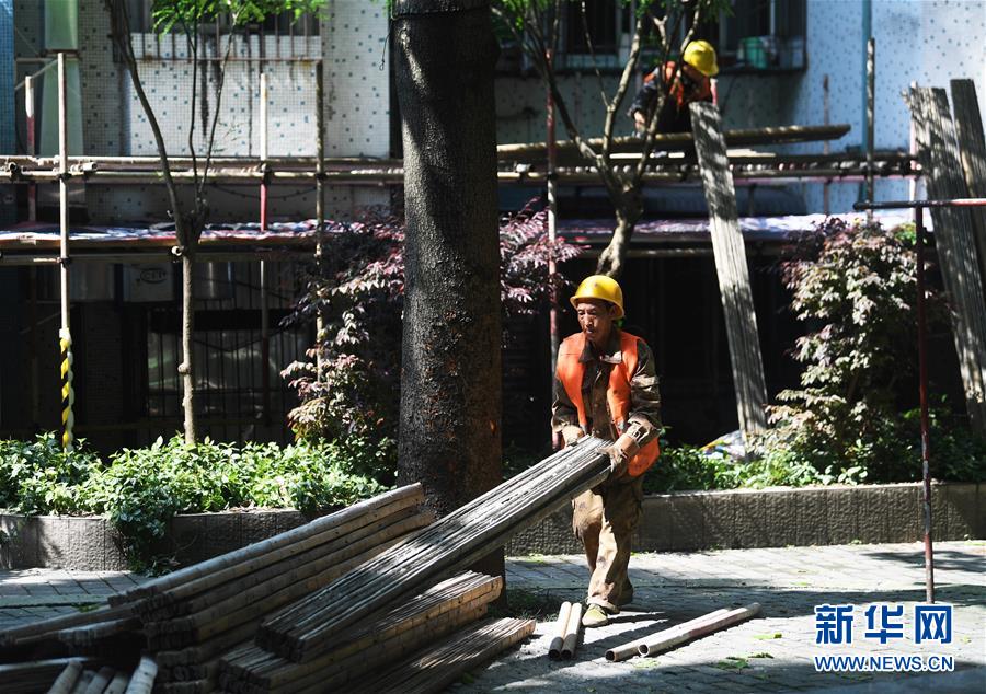 4月26日,工人在渝中區(qū)大溪溝街道雙鋼路社區(qū)改造提升項(xiàng)目施工現(xiàn)場作業(yè)。近段時間以來,重慶市渝中區(qū)大溪溝街道加快推進(jìn)轄區(qū)內(nèi)老舊小區(qū)改造提升工作,從環(huán)境衛(wèi)生、房屋管理及養(yǎng)護(hù)、安防及車輛管理、綠化管理等方面進(jìn)行綜合改造提升,以增強(qiáng)社區(qū)居民的幸福感、獲得感、安全感。新華社記者王全超攝