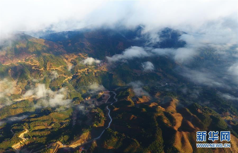 這是云霧繚繞的堯告村(無(wú)人機(jī)照片,2019年1月18日攝)。新華社記者黃孝邦攝
