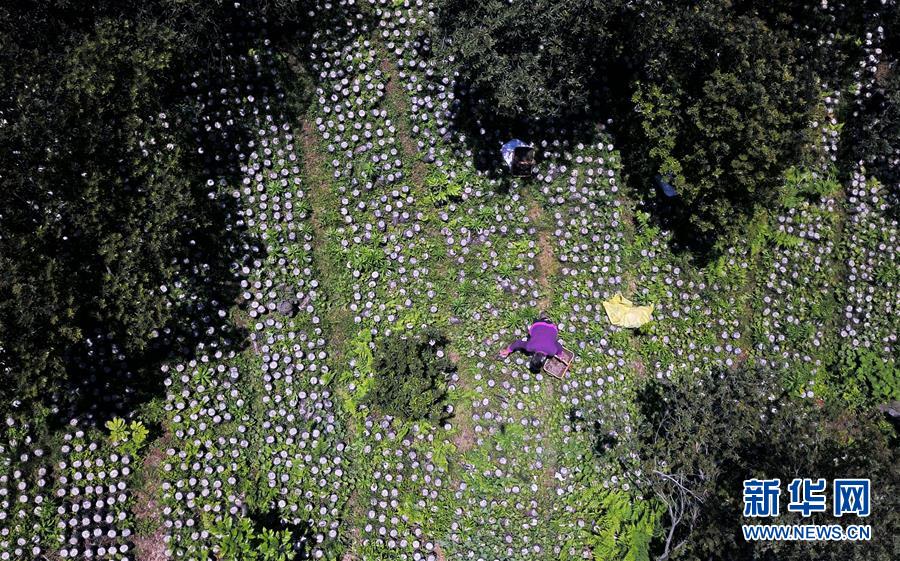村民在劍河縣岑松鎮(zhèn)巫亮村林下仿野生食用菌基地采摘木耳(4月27日攝,無(wú)人機(jī)照片)。近年來(lái),貴州省黔東南苗族侗族自治州劍河縣充分利用林下土地培育木耳,既不耽誤林木生長(zhǎng),又發(fā)展了食用菌產(chǎn)業(yè)。目前,該縣采取“龍頭企業(yè)+合作社+貧困戶(hù)”的合作模式,大力推廣林下木耳種植,帶動(dòng)農(nóng)民增收。新華社記者楊文斌攝