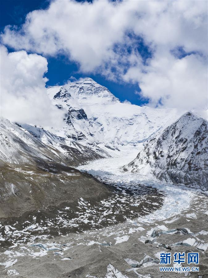位于珠穆朗瑪峰腳下海拔5400米左右的中絨布冰川(4月30日攝,無人機照片)。位于珠穆朗瑪峰腳下海拔5400米左右的中絨布冰川,巍峨壯觀,冰塔林托起世界最高峰,讓人嘆為觀止。新華社記者旦增尼瑪曲珠攝
