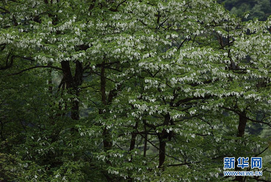位于四川省滎經(jīng)縣的龍蒼溝國家森林公園里,鴿子花盛開(5月4日攝)。目前,位于四川省大相嶺山脈東麓北坡的龍蒼溝國家森林公園里,約8萬畝鴿子花盛開,猶如鴿群展翅欲飛。鴿子花即珙桐花,珙桐是珍稀植物,有著植物“大熊貓”“活化石”之稱,是國家一級(jí)保護(hù)植物,也是著名的觀賞植物。2008年,華中農(nóng)業(yè)大學(xué)、湖北民族學(xué)院和四川省縈經(jīng)縣林業(yè)部門聯(lián)合對(duì)龍蒼溝森林公園的珙桐進(jìn)行了種群生態(tài)學(xué)調(diào)查,發(fā)現(xiàn)珙桐在這里共分布約8萬畝,集中成片分布近4萬畝。珙桐面積之大、株數(shù)之多、密度之高,十分罕見。新華社記者 江宏景 攝
