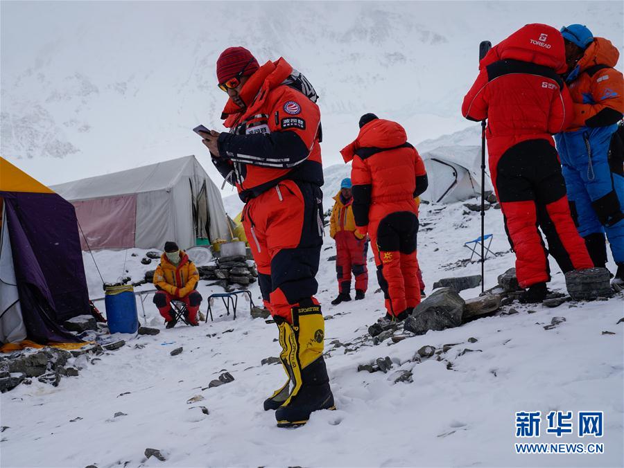 5月7日,2020珠峰高程測量登山隊(duì)進(jìn)駐海拔6500米的前進(jìn)營地。新華社特約記者扎西次仁攝