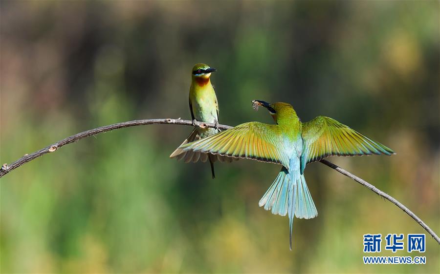 在海口五源河下游蜂虎保護(hù)小區(qū),栗喉蜂虎在覓食(5月7日攝)。新華社記者楊冠宇攝