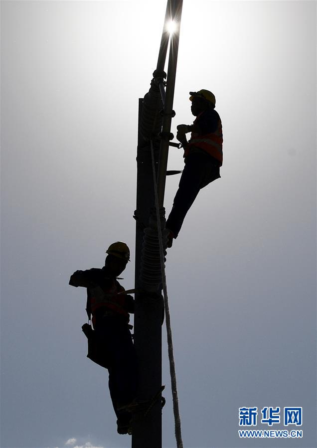 5月10日,中鐵電氣化局工程人員在鄭州新鄭機場至鄭州南站城際鐵路工地施工。新華社記者郝源攝