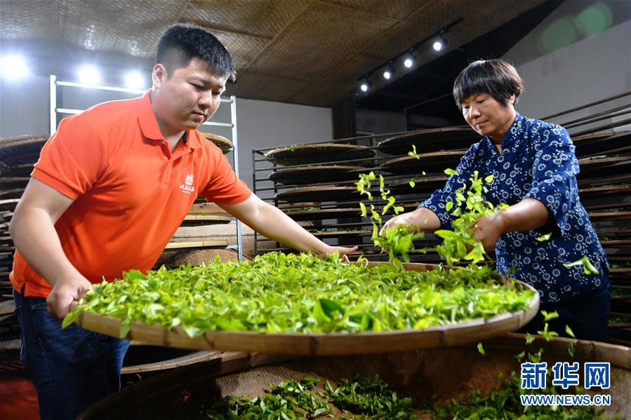 游玉瓊跟方舟一起對武夷巖茶中的白雞冠品種按白茶做法進(jìn)行創(chuàng)新研發(fā)(5月10日攝)。新華社記者魏培全攝