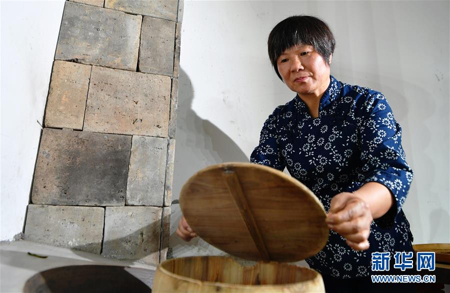 方舟在對新研發(fā)出的白雞冠茶用傳統(tǒng)綿紙進(jìn)行緊壓包裝(5月10日攝)。新華社記者魏培全攝