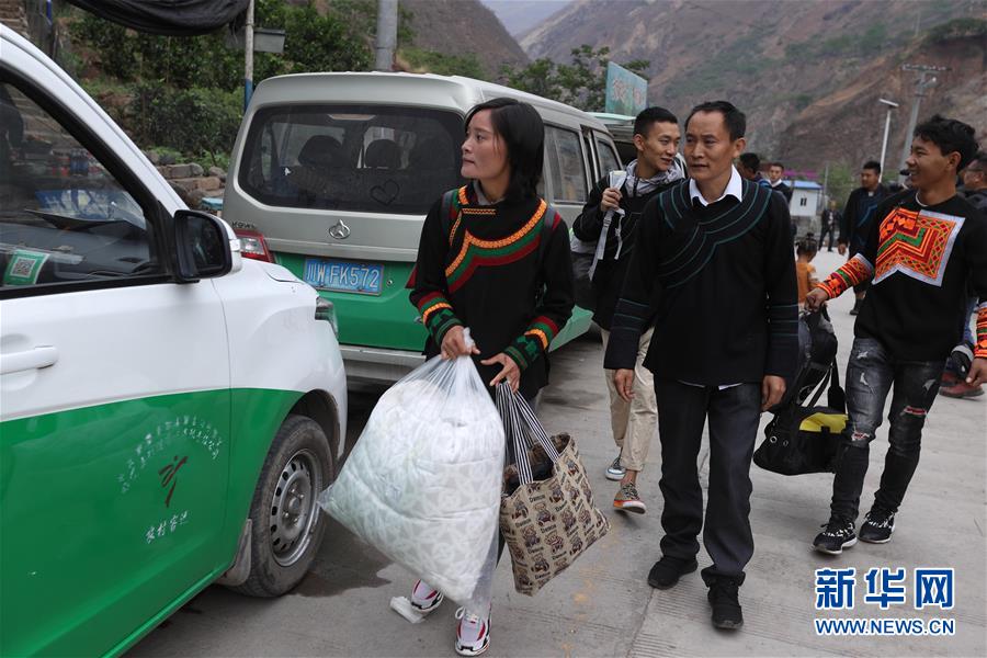 5月12日,四川省昭覺縣阿土列爾村第一批26戶貧困戶陸續(xù)下山準(zhǔn)備搬新家。新華社記者江宏景攝