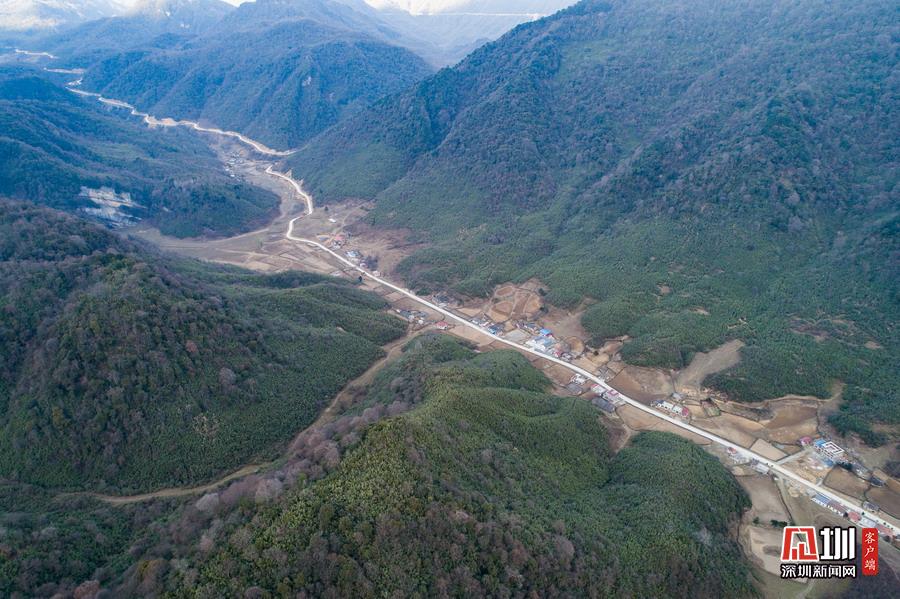 圖為2019年3月11日,陜西漢中鎮(zhèn)巴縣三元鎮(zhèn)。天坑就在其左側山里。