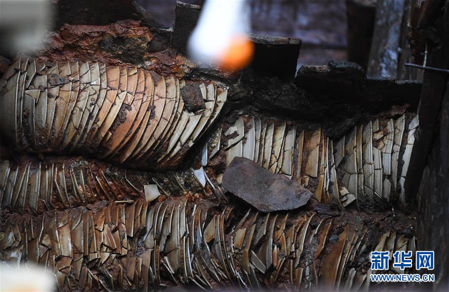 這是在廣東陽江海陵島拍攝的“南海I號(hào)”船體上嵌入的瓷器(5月12日攝)。新華社記者鄧華攝