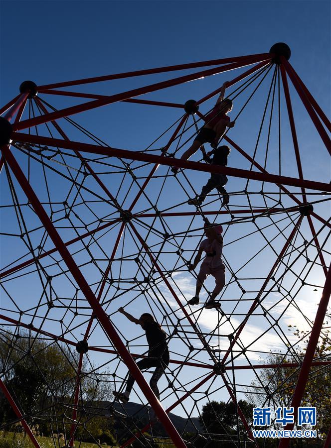 5月14日,孩子們在首都惠靈頓郊外公園的游樂場玩耍。當天是新西蘭從新冠疫情防控響應三級下調(diào)到二級的第一天,經(jīng)濟活動全面重啟,公園等公共設(shè)施首次重新開放,中小學生將于5月18日全面返校復課。新華社記者郭磊攝