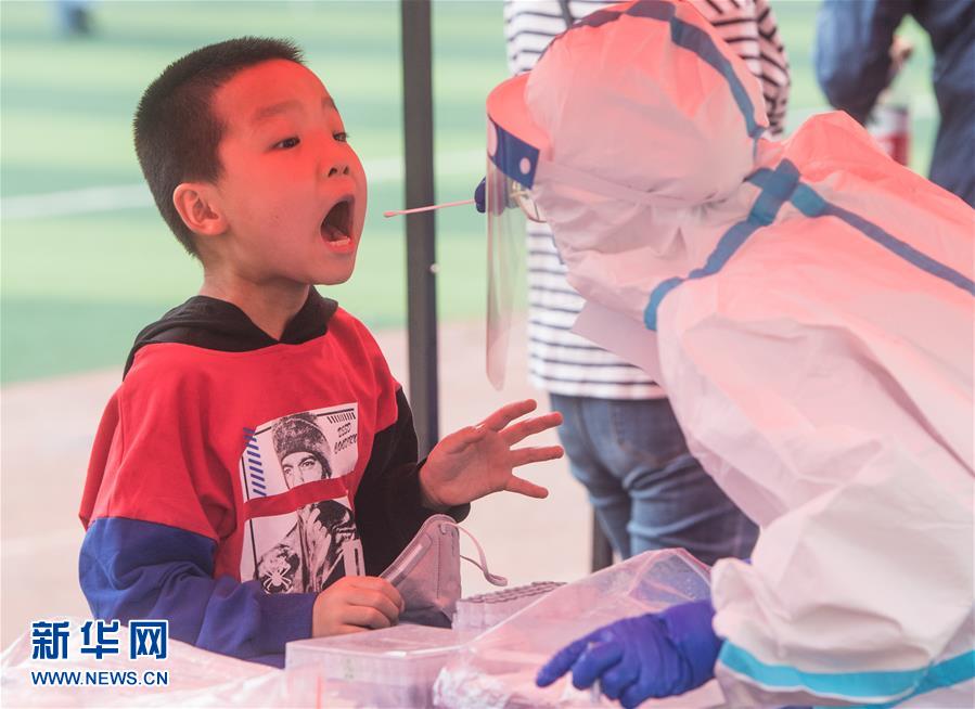 5月15日,在武漢東西湖區(qū)吳家山第一小學(xué)操場檢測點(diǎn),工作人員對(duì)市民進(jìn)行核酸檢測。近日,武漢將對(duì)全市市民有序開展核酸檢測,進(jìn)一步摸清無癥狀感染者底數(shù),進(jìn)而有效管控。新華社記者肖藝九攝
