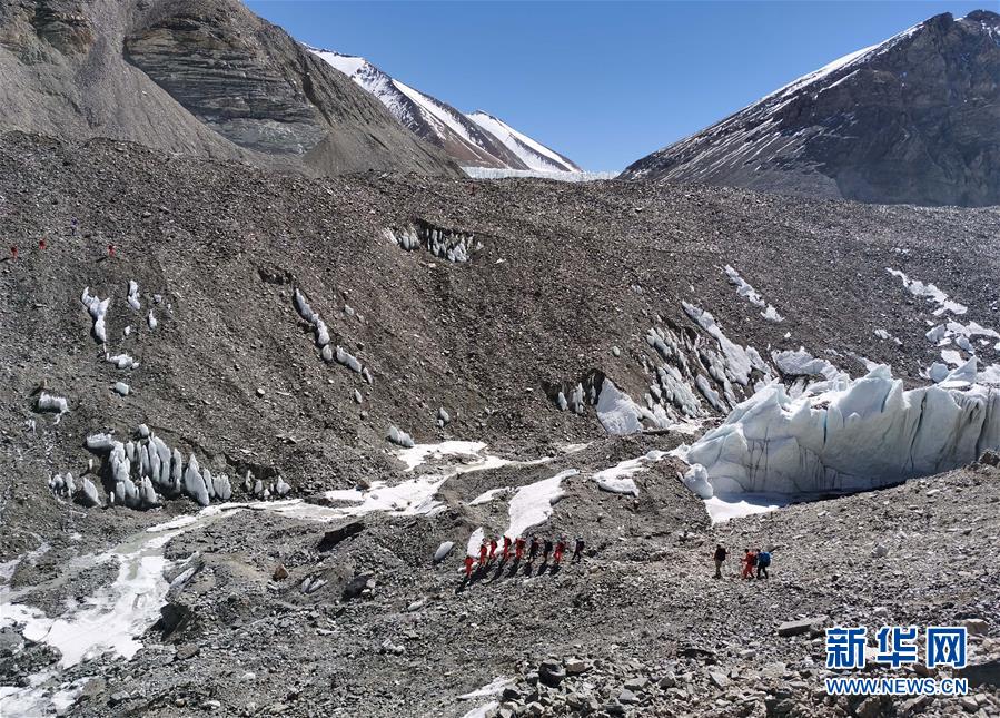 2020珠峰高程測量登山隊抵達海拔6500米的前進營地