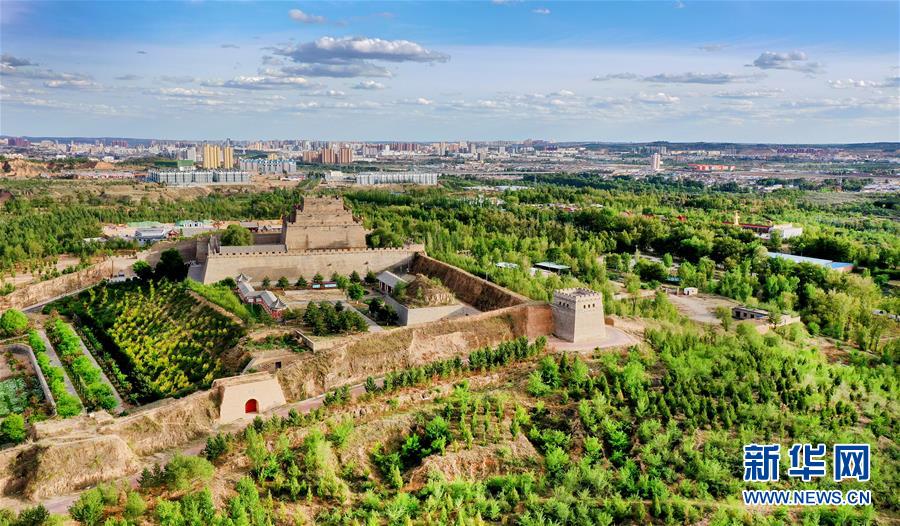 5月24日拍攝的樹林環(huán)繞的榆林市鎮(zhèn)北臺(無人機(jī)照片)。  2017年4月起,地處毛烏素沙漠南緣的陜西省榆林市開展主城區(qū)百萬畝生態(tài)圈及環(huán)城防護(hù)林帶建設(shè),對荒山荒地荒沙、撂荒地、不宜耕作土地、閑置土地進(jìn)行造林綠化,對低效林地進(jìn)行提升改造。2019年11月,榆林市被授予“國家森林城市”稱號。昔日區(qū)域內(nèi)的裸露土地全面綠化,城市及周圍處處綠樹成蔭,呈現(xiàn)出一派“塞上森林城”的美景。  新華社記者陶明攝