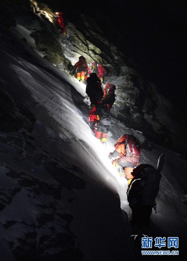 5月27日,2020珠峰高程測量登山隊正在向珠峰峰頂進發(fā)。新華社特約記者扎西次仁攝