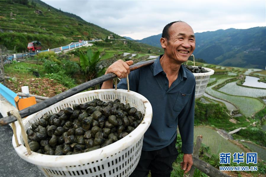 在田螺養(yǎng)殖過程中,采取“公司+合作社+農(nóng)戶”的模式,政府統(tǒng)一向龍頭公司采購種螺交給合作社,合作社根據(jù)貧困戶水田規(guī)模和意愿發(fā)放種螺,同時公司技術(shù)人員入村開展養(yǎng)殖技術(shù)培訓(xùn),田螺收獲時再由合作社對接種螺公司統(tǒng)一上門按保底價回收,解除了貧困戶養(yǎng)殖和銷售的后顧之憂,進(jìn)一步拓寬山區(qū)群眾脫貧增收渠道。新華社記者楊文斌攝