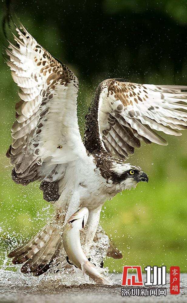 2020年5月28日?qǐng)?bào)道(具體拍攝時(shí)間不詳),54歲的Gladys Klip來(lái)自荷蘭,是一名銀行助理,他在蘇格蘭高地拍攝到魚鷹捕魚的精彩照片。畫面中,魚鷹快速俯沖而下,掠過(guò)水面,鷹爪隨即從水中成功抓起一條魚兒,濺起水花,整個(gè)過(guò)程精彩詮釋快準(zhǔn)狠。Gladys Klip稱他在早晨5點(diǎn)的時(shí)候已經(jīng)在等候拍攝。