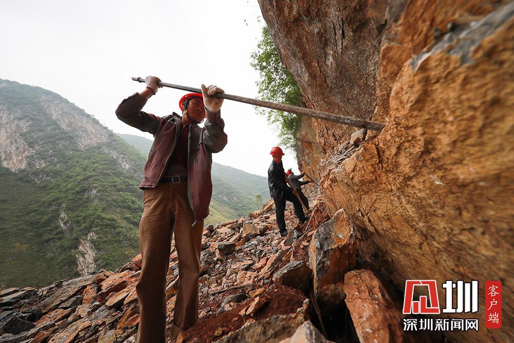 經(jīng)過幾年的努力,修通了大約4公里的毛路,但剩下觀音巖近1000米的懸崖絕壁成了當(dāng)?shù)厝罕娒撠毠?jiān)路上的“攔路虎”,幾批施工隊(duì)伍都因?yàn)槭┕るy度大而放棄。2019年底,化作鄉(xiāng)黨委政府順應(yīng)民意,多方籌措資金,決定打通這條產(chǎn)業(yè)路、民心路的“最后一公里”。今年1月工程啟動(dòng)后,深受當(dāng)?shù)厝罕姎g迎,大家踴躍投工投勞,義務(wù)參與建設(shè)。