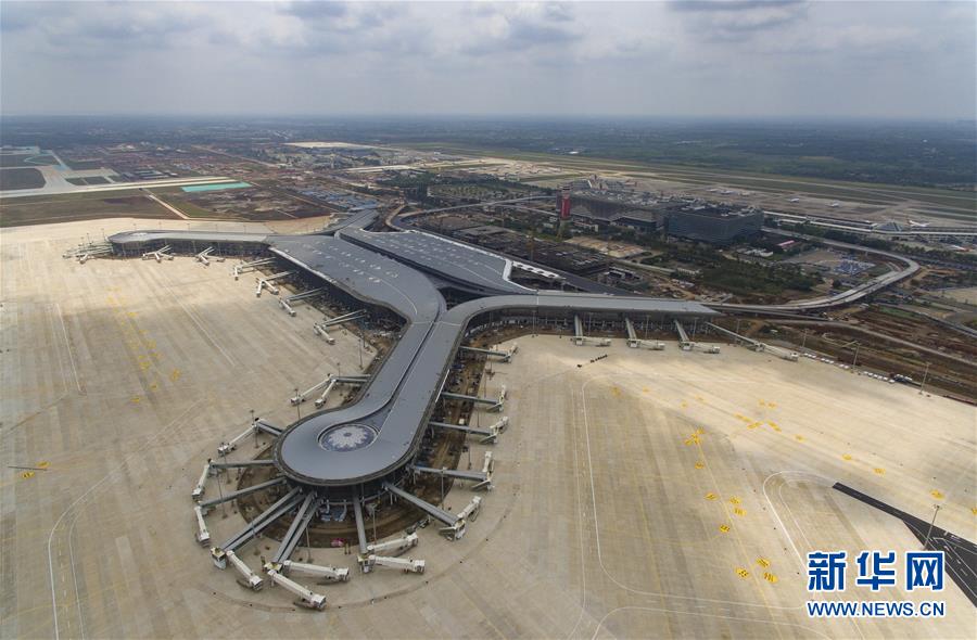 這是4月11日拍攝的建設中的海口美蘭國際機場二期項目航站樓(無人機照片)。新華社記者郭程攝