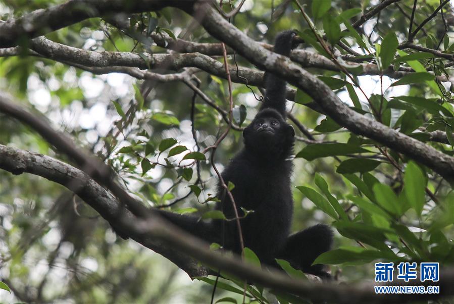 這是在海南霸王嶺自然保護區(qū)內拍攝的海南長臂猿(2019年10月25日攝)。新華社記者蒲曉旭攝
