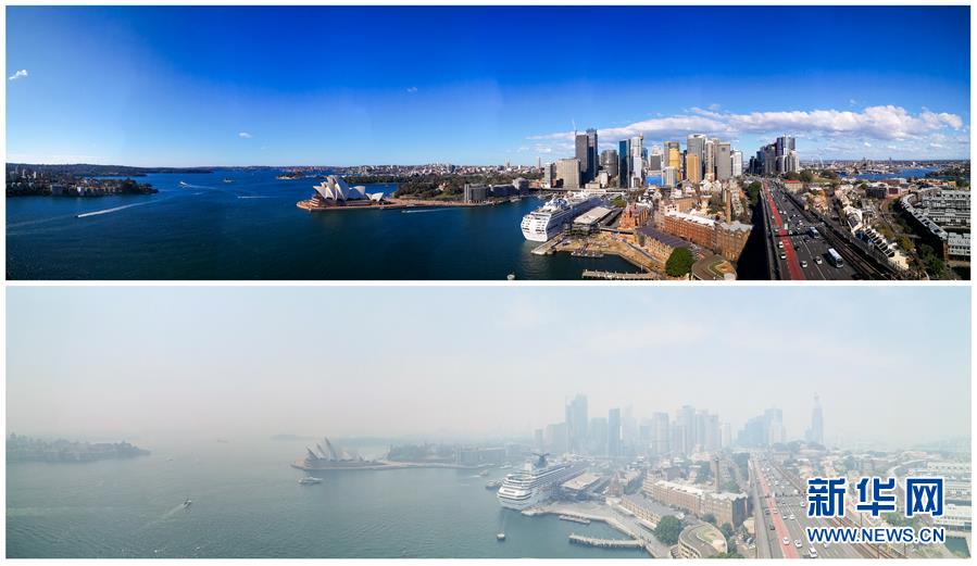 這張拼版照片顯示的是2018年7月6日(上)和2019年12月19日拍攝的澳大利亞悉尼港區(qū)的空氣質(zhì)量對(duì)比效果。2019年中至2020年初,持續(xù)半年左右的澳大利亞森林火災(zāi)造成嚴(yán)重的環(huán)境災(zāi)難。6月5日是第47個(gè)聯(lián)合國世界環(huán)境日,今年的主題為“關(guān)愛自然刻不容緩”。新華社記者白雪飛攝。
