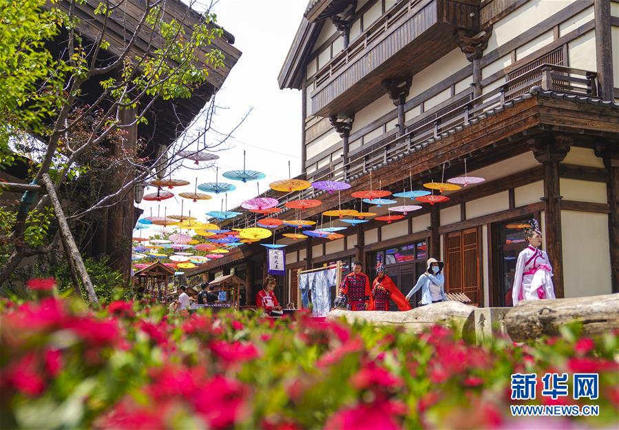 6月13日,在長春市世茂蓮花山小鎮(zhèn)寬厚里商街,表演者身穿漢服、古裝進行表演展示。當日是“文化和自然遺產(chǎn)日”。吉林長春首屆蓮花山消夏生活節(jié)在世茂蓮花山小鎮(zhèn)舉行?;顒訉⒎沁z展示與假日消暑休閑相結(jié)合,讓游人在“古色古香”的油紙傘巷中品傳統(tǒng)文化魅力,享夏日休閑愜意。新華社記者 許暢 攝