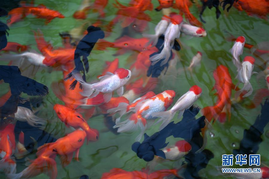 在天津現(xiàn)代晨輝科技集團有限公司的養(yǎng)殖示范場,工人在投喂飼料(6月15日攝)。近年來,天津市寶坻區(qū)大白莊鎮(zhèn)大力發(fā)展觀賞魚養(yǎng)殖,在當?shù)佚堫^企業(yè)的帶動下,成為增加農(nóng)民收入的新途徑。據(jù)了解,企業(yè)對附近養(yǎng)殖戶統(tǒng)一提供苗種、飼料、技術(shù)支持,以及觀賞魚成魚后保價回收的服務。養(yǎng)殖戶每畝水面平均收入約1.8萬元,解決周邊農(nóng)民就業(yè)近200人。新華社記者 李然 攝