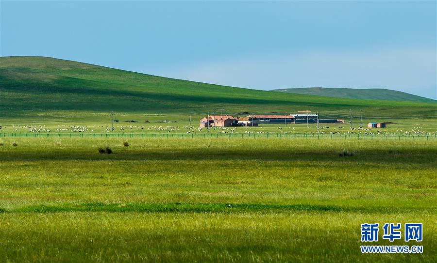 這是錫林郭勒盟烏拉蓋草原風光(6月17日攝)。初夏時節(jié),內(nèi)蒙古中部的錫林郭勒大草原風景如畫。新華社記者連振攝