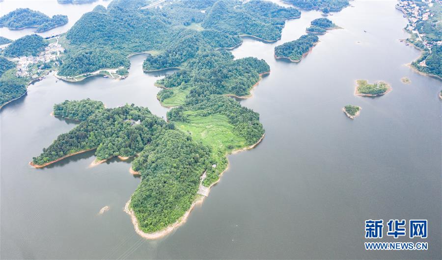 6月21日拍攝的紅楓湖景區(qū)風光(無人機照片)。夏至時節(jié),貴州省清鎮(zhèn)市紅楓湖景區(qū)草木蒼翠,秀麗的湖光山色吸引不少游客前來游玩。新華社記者陶亮攝