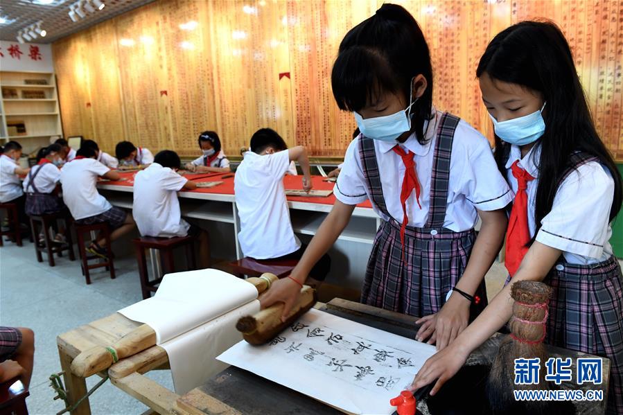 6月22日,連城縣四堡中心小學(xué)學(xué)生用雕版印刷“禁毒三字經(jīng)”,開展禁毒宣傳活動(dòng)。在“6·26”國際禁毒日來臨之際,福建省連城縣城鄉(xiāng)小學(xué)學(xué)生將提線木偶、雕版印刷及傳統(tǒng)花燈等當(dāng)?shù)乜图曳沁z文化元素,融入校園禁毒宣傳活動(dòng)中,提高防毒、拒毒和禁毒意識。新華社記者彭張青攝