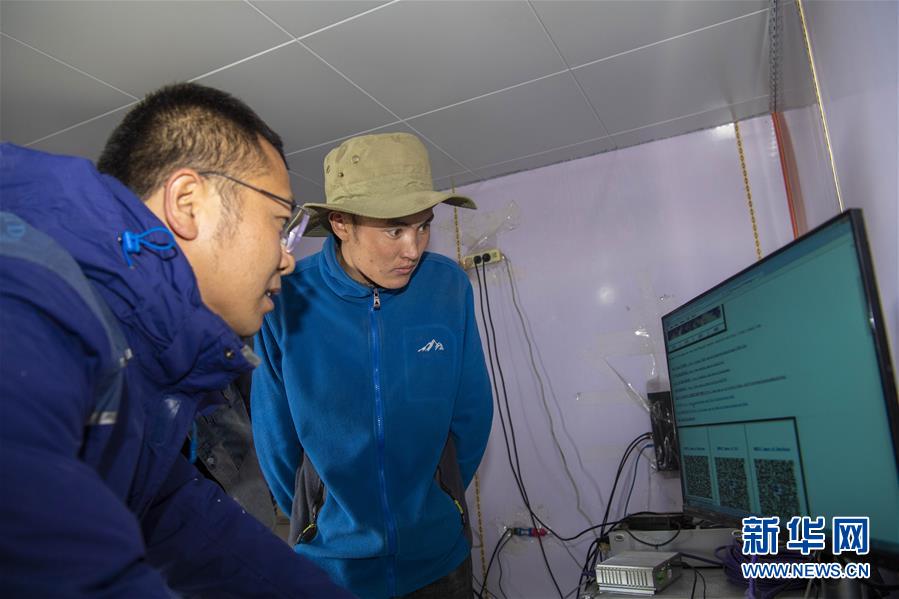 助理觀測員阿克力·圖拉提在中國科學(xué)院新疆天文臺慕士塔格觀測站值守(6月15日攝)。新華社記者胡虎虎攝