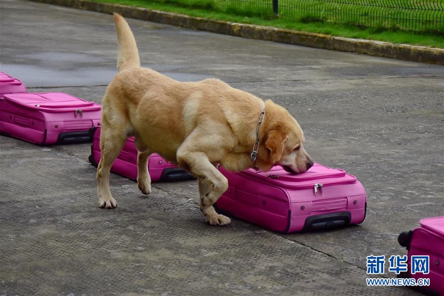 6月24日,緝毒犬“多多”練習辨認毒品的位置。新華社記者 鄭夢雨 攝