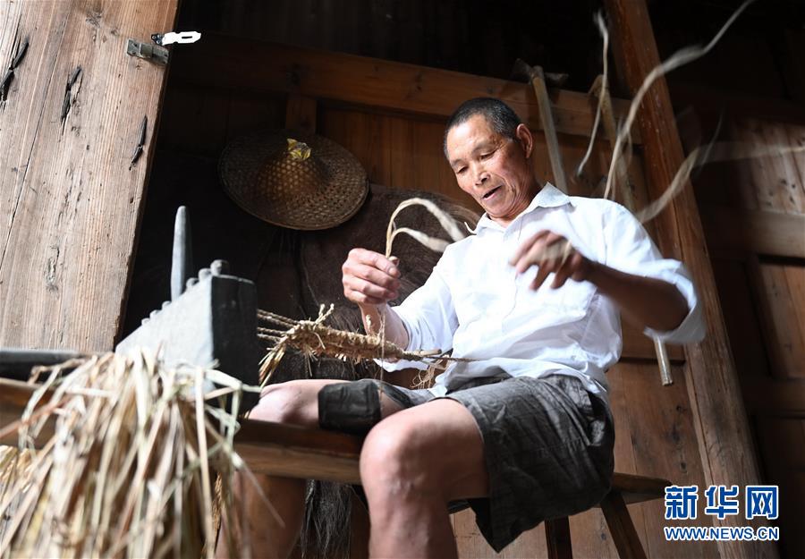 6月24日,福建政和縣外屯鄉(xiāng)湖屯村村民展示民間編草鞋手藝。當日,福建省政和縣舉行第三屆中國·屯福橋端午民俗文化節(jié)。端午節(jié)臨近,各地舉行包粽子、做香包、賽龍舟等豐富多彩的民俗文化活動,迎接傳統(tǒng)佳節(jié)的到來。新華社記者林善傳攝