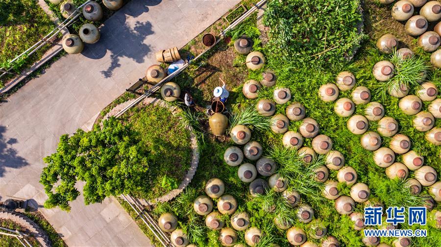 赤水曾氏曬醋廠晾曬的醋壇(6月26日攝,無人機(jī)照片)。“赤水曬醋”采用固體發(fā)酵繁殖產(chǎn)生天然醋酸菌,醋醅和成品醋都在日光下曝曬而成,故稱曬醋?!俺嗨畷翊住敝谱鳉v史悠久,工序考究,2009年被列入貴州省級(jí)非遺名錄。新華社記者 陶亮 攝