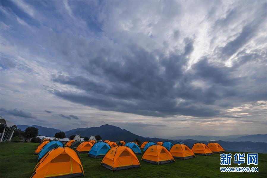 6月27日在杭州市富陽區(qū)常安鎮(zhèn)永安山頂拍攝的帳篷酒店。近期,浙江省杭州市富陽區(qū)場口鎮(zhèn)、常安鎮(zhèn)和湖源鄉(xiāng)組團(tuán)開啟了一場夏季“綠水青山嘉年華”。這幾個壺源溪流域鄉(xiāng)鎮(zhèn)整合生態(tài)旅游資源,組團(tuán)開發(fā)山村旅游項目,游客可以參與壺源溪水上游樂、露營永安山頂、特色農(nóng)產(chǎn)品集市和瓜果節(jié)等特色活動。新華社記者徐昱攝