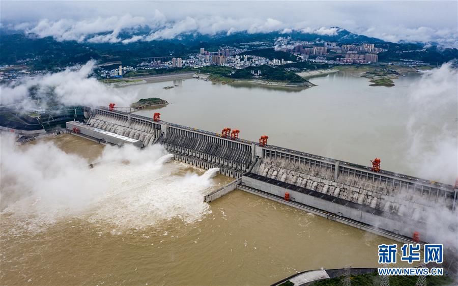 6月29日,三峽樞紐開啟泄洪孔泄洪(無人機(jī)照片)。受長江中上游強(qiáng)降雨影響,進(jìn)入三峽水庫的水量持續(xù)增多。為騰出一定庫容迎接近期可能到來的洪水,三峽樞紐于6月29日上午開啟兩個(gè)泄洪孔,加大下泄流量。這是三峽樞紐今年首次泄洪。28日14時(shí),三峽水庫入庫流量達(dá)4萬立方米/秒,是27日14時(shí)的兩倍。為應(yīng)對(duì)此輪來水,長江防總要求將三峽水庫下泄流量上調(diào)至日均3.5萬立方米/秒。新華社發(fā)(鄭家裕攝)