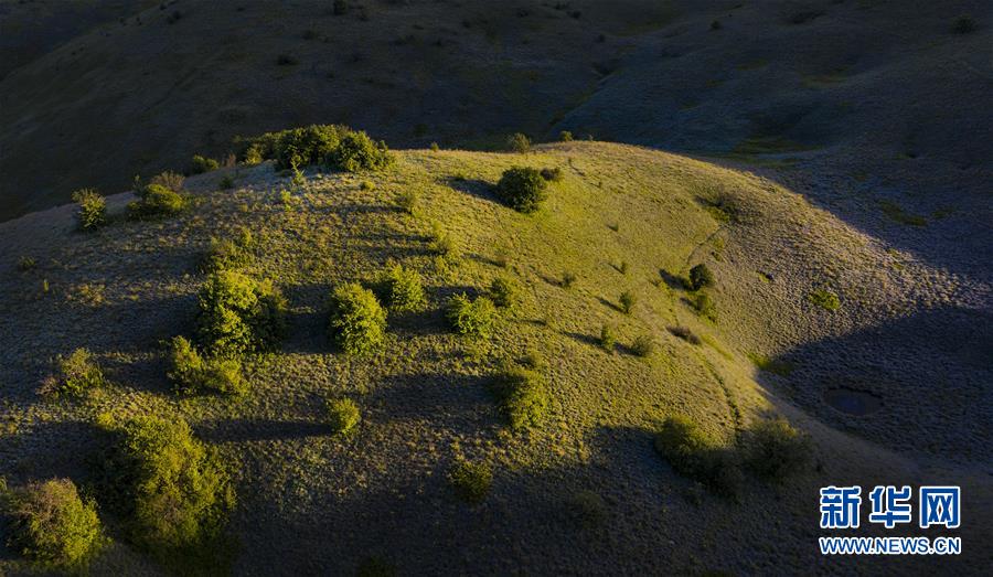 6月30日,朝霞照耀下的神田草甸(無人機(jī)照片)。位于陜西省安康市嵐皋縣與重慶市城口縣交界處大巴山神田主脊北坡的神田草甸,面積超過1.1萬畝。夏日的朝霞中,起伏的草甸仿佛一塊寬大無邊的綠色地毯,鑲嵌在大巴山上,如詩如畫。新華社記者陶明攝