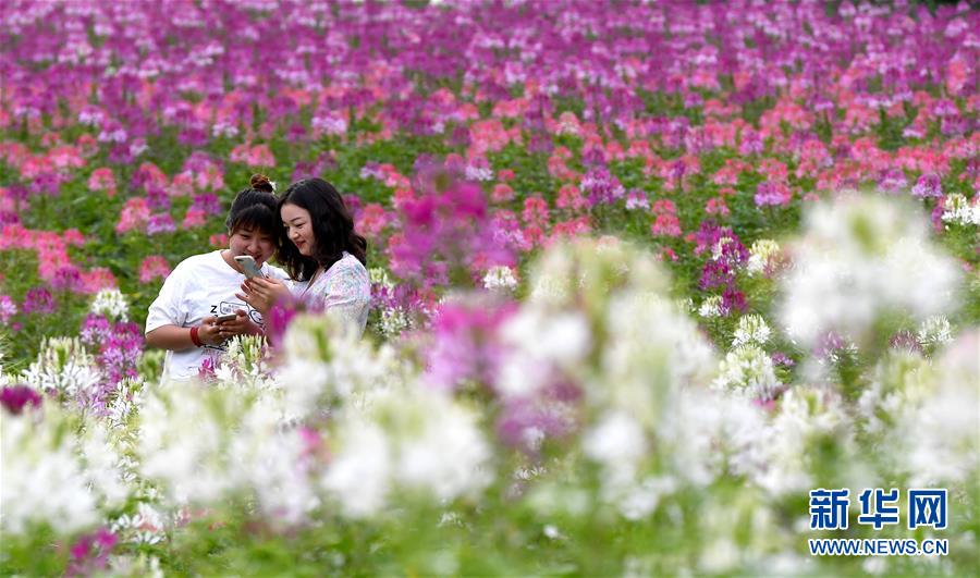 7月1日,市民在位于留壩縣城的金水灣花海拍照。近日,陜西省漢中市留壩縣金水灣花海的各類(lèi)鮮花次第綻放,絢麗繽紛。新華社記者劉瀟攝