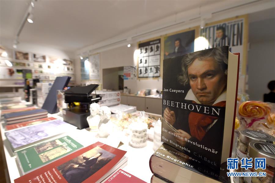 7月2日,奧地利維也納的貝多芬博物館紀(jì)念品商店展示關(guān)于貝多芬的書籍。因疫情關(guān)閉的奧地利維也納貝多芬博物館7月1日起再次開門迎客。該博物館是貝多芬在維也納的故居之一,貝多芬曾在此長期居住并創(chuàng)作了部分經(jīng)典的音樂作品。2020年是貝多芬誕辰250周年。新華社記者郭晨攝