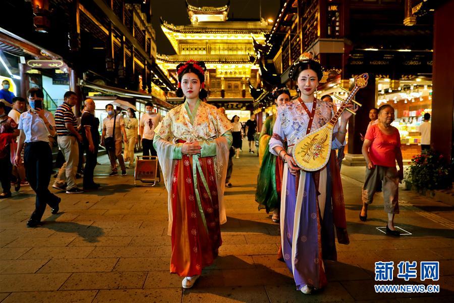 7月3日,上海豫園內(nèi)舉行古裝巡游活動(dòng)。從7月第一個(gè)周末起,上海豫園原有的“豫園六點(diǎn)半”集市全面升級(jí),煥彩燈光、演藝活動(dòng)和花車集市全線更新,讓市民和游客在觀燈、觀人、觀演的沉浸式體驗(yàn)中,享受夏日特色的“食玩”樂趣。新華社記者 劉穎 攝