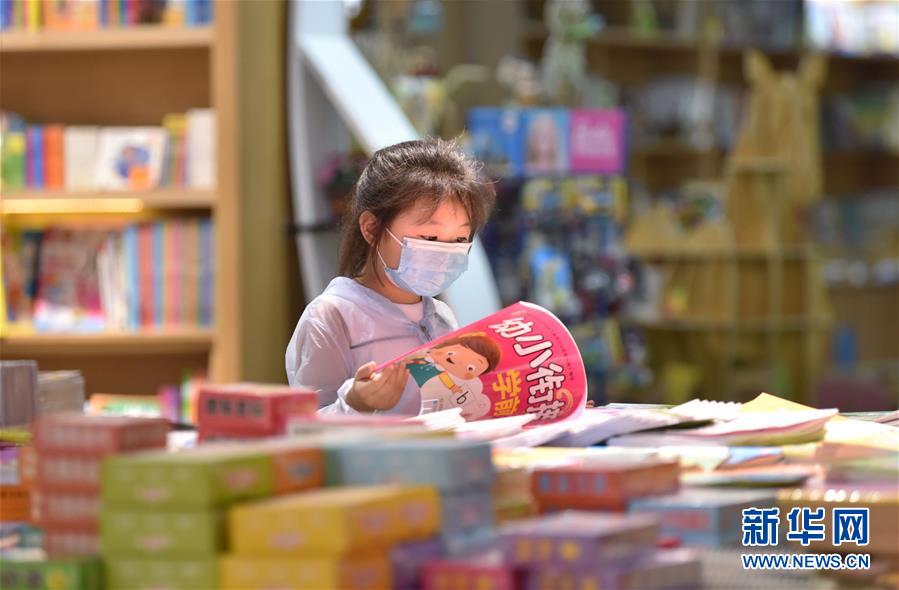 7月5日,一名小朋友在河北省定州市新華書店挑選圖書。近日,河北省定州市新華書店在做好疫情防控的前提下,開展“樂享圖書嘉年華”系列活動,通過舉辦圖書聯(lián)展、親子閱讀、少兒讀物推介等活動,吸引少年兒童走進圖書館,感受書香陪伴的夏天。新華社記者朱旭東攝