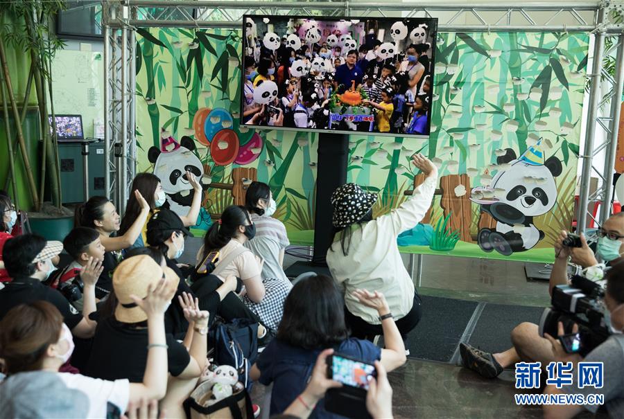 7月6日,在臺北市立動物園,大熊貓“圓仔”的臺北粉絲和四川粉絲互致問候,共同慶?!皥A仔”生日。新華社記者金立旺攝