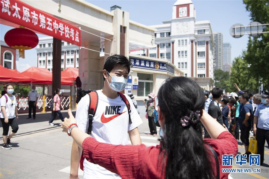 7月7日,在山西省太原市第五中學(xué)??键c(diǎn),結(jié)束首場科目考試的考生走出考場。當(dāng)日,2020年高考拉開帷幕。新華社記者楊晨光攝