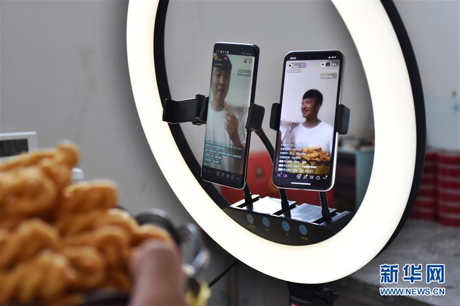 7月8日,張亞博、張亞釗兄弟在直播帶貨。新華社記者韓朝陽(yáng)攝